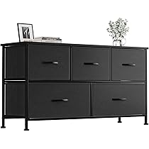 Amazon Com Super Deal Dresser For Bedroom With 5 Storage Drawers 37 Inch Tall Fabric Chest Of Drawers With Wood Top And Metal Frame For Closet Living Room Hallway Entryway Black Home